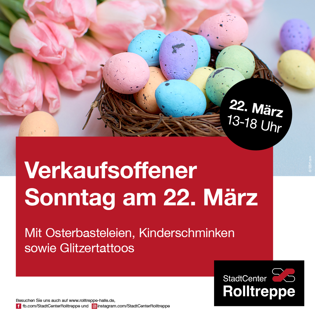 Am 22. März lädt euch das StadtCenter Rolltreppe zu einem verkaufsoffenen Sonntag ein.